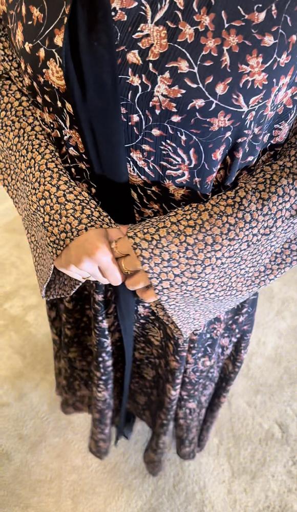 القماش : شيفون كوري اسود مشجر وبطانة شيفون ليزر اسود
