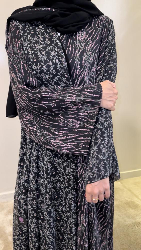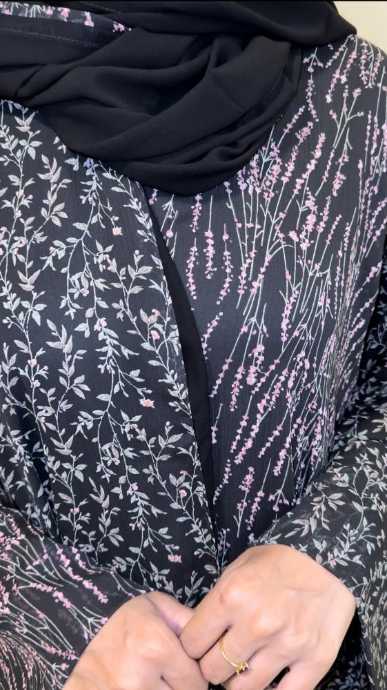 القماش :خامتين شيفون يوريو مبطنة العباية شيفون ليزر اسود