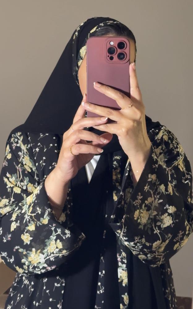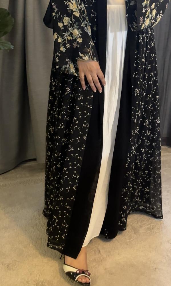 القماش : شيفون كوري مشجر مبطنة العباية ليزر .
