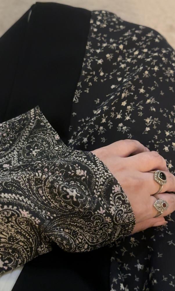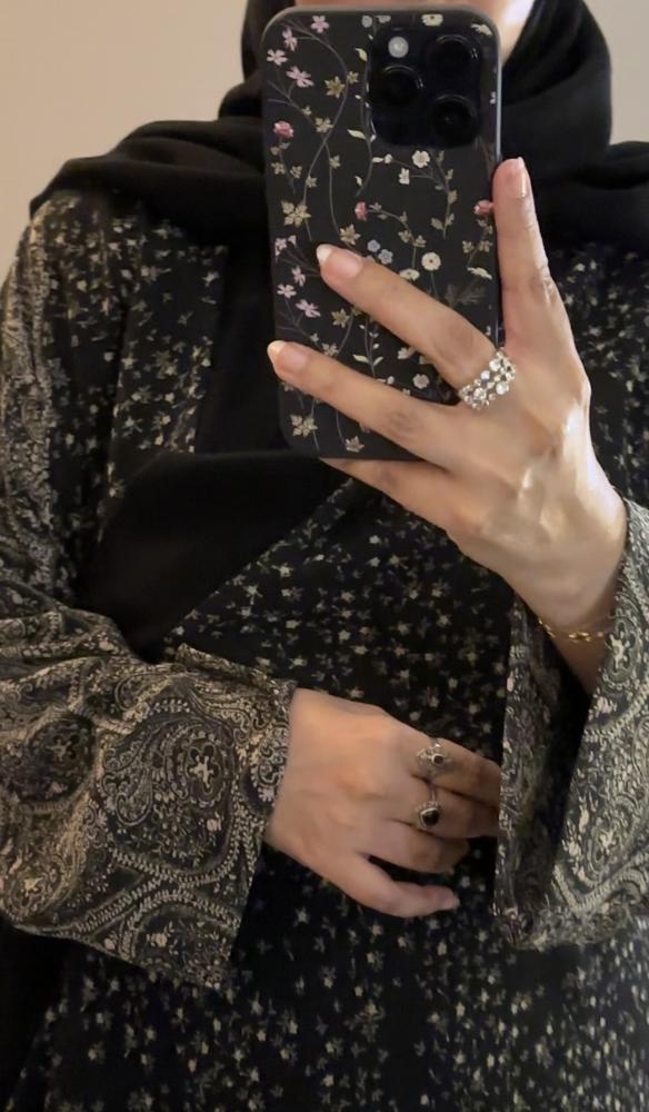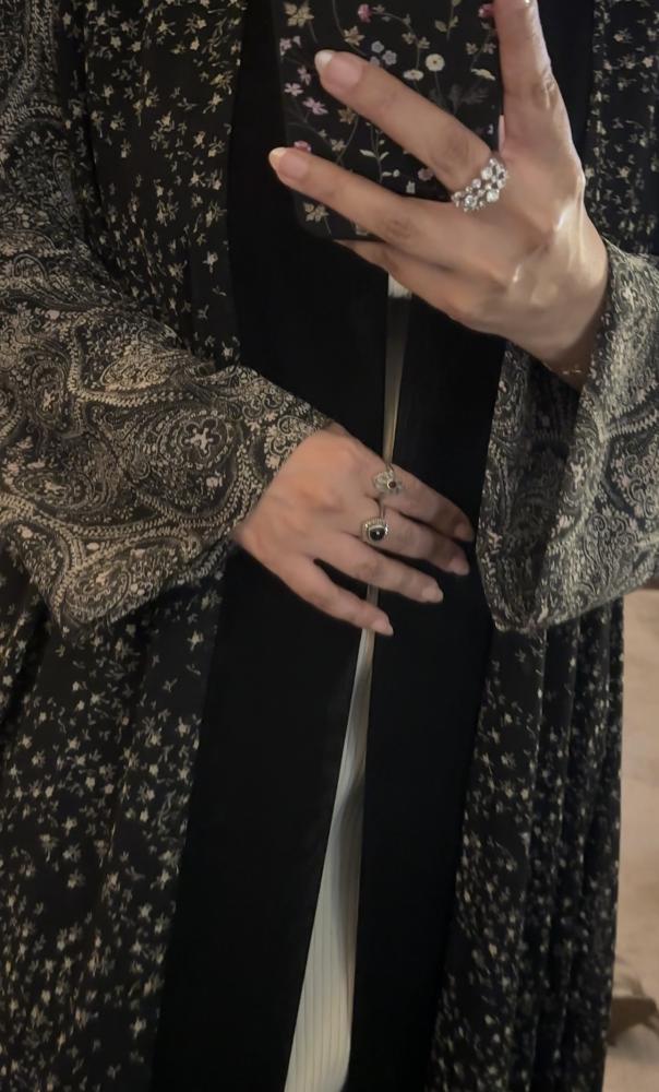 القماش : شيفون كوري اسود مشجر مبطنة العباية ليزر