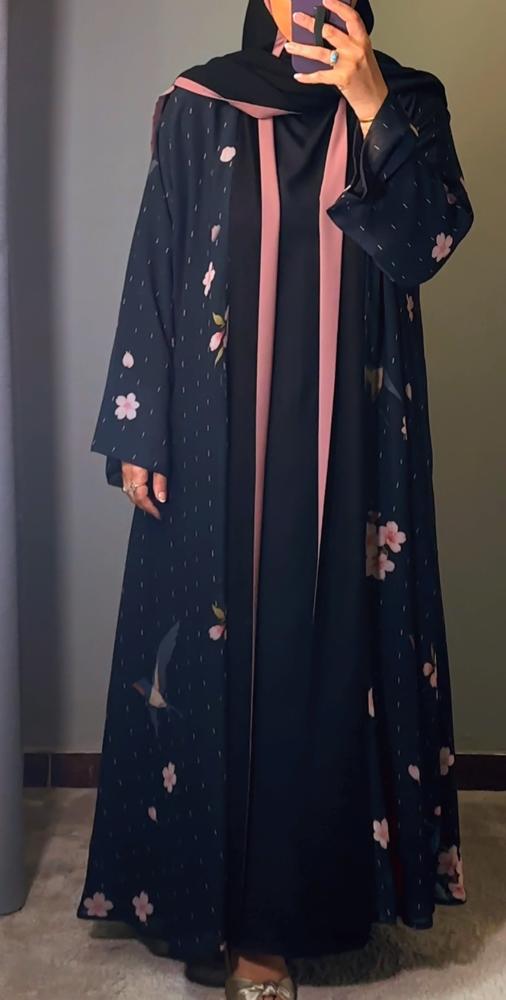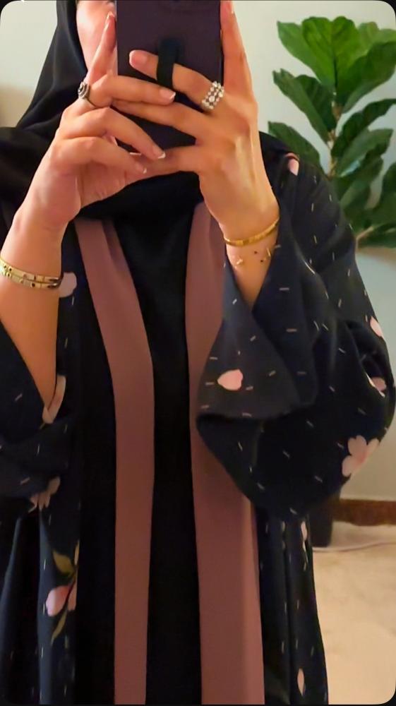 القماش : شيفون ،اسود مشجر الشيفون خفيف وناعم ، مبطنة العباية ليزر اسود