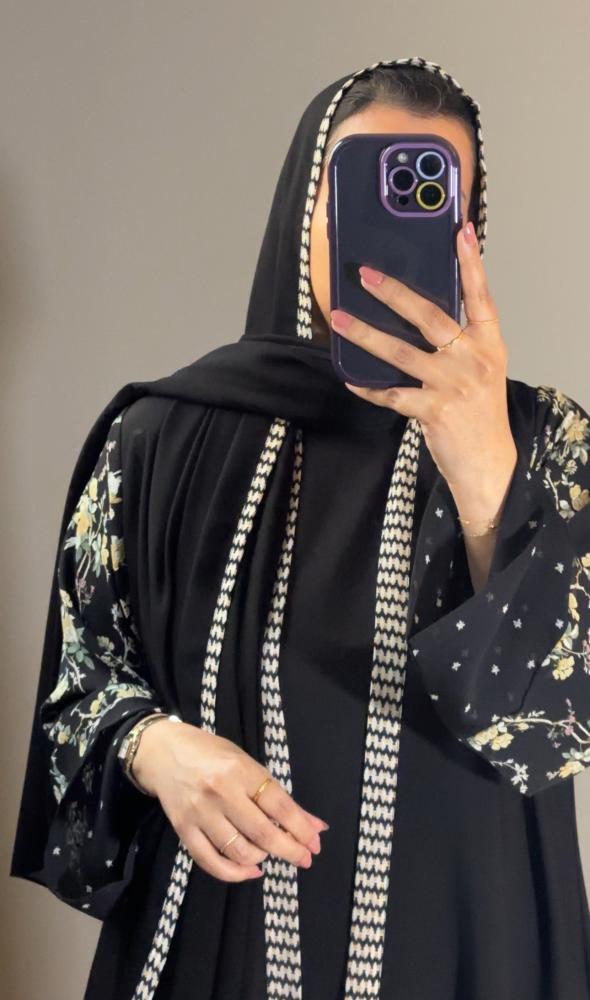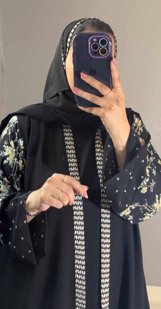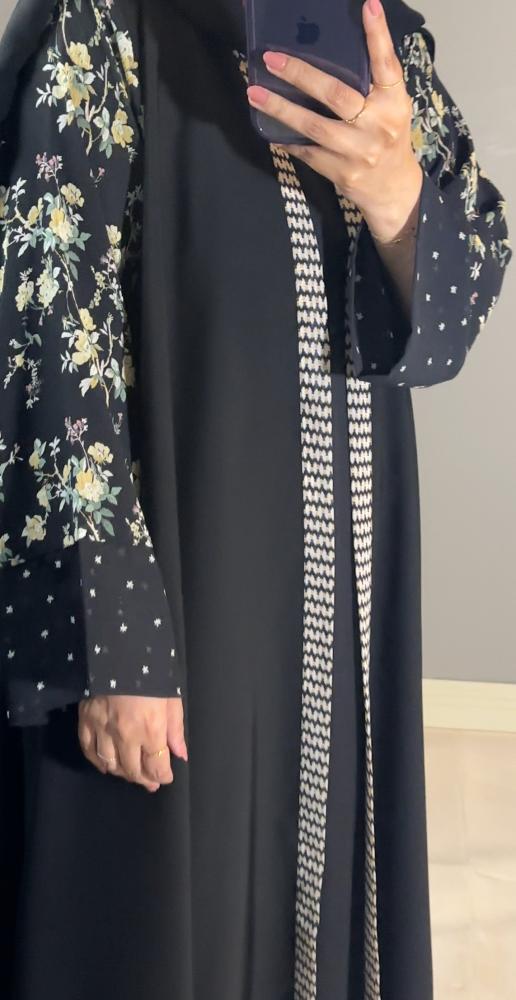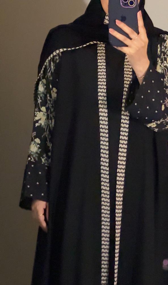 القماش : كريب اندونيسي اسود بريميوم بلاك وياقة و كم شيفون مشجر مبطن .
