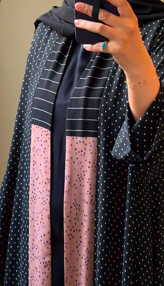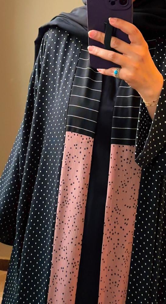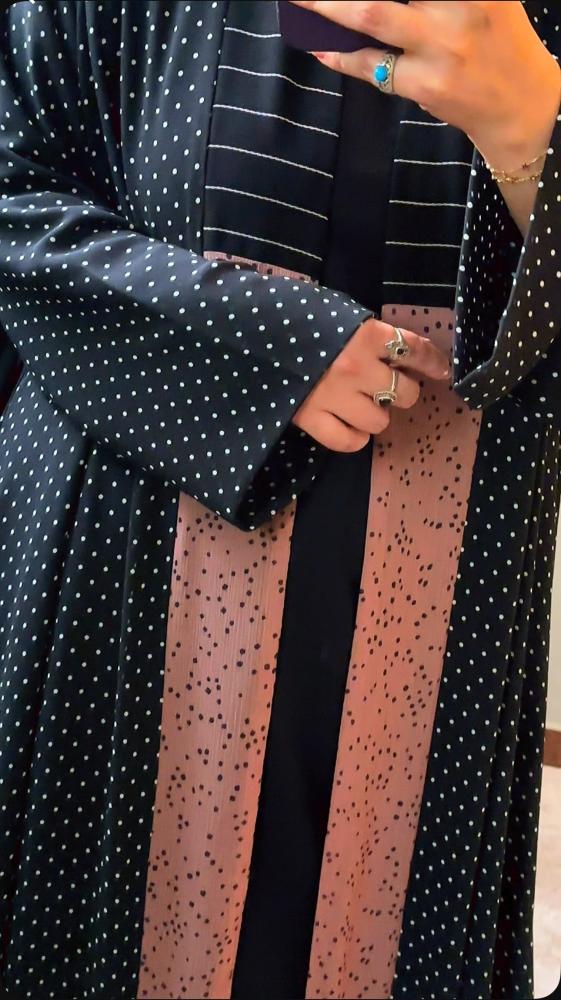 القماش : شيفون منقط مع ياقة مبطنة العباية ليزر اسود